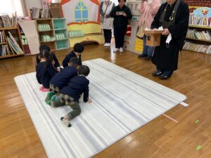 お楽しみの「涅槃会団子拾い」です。